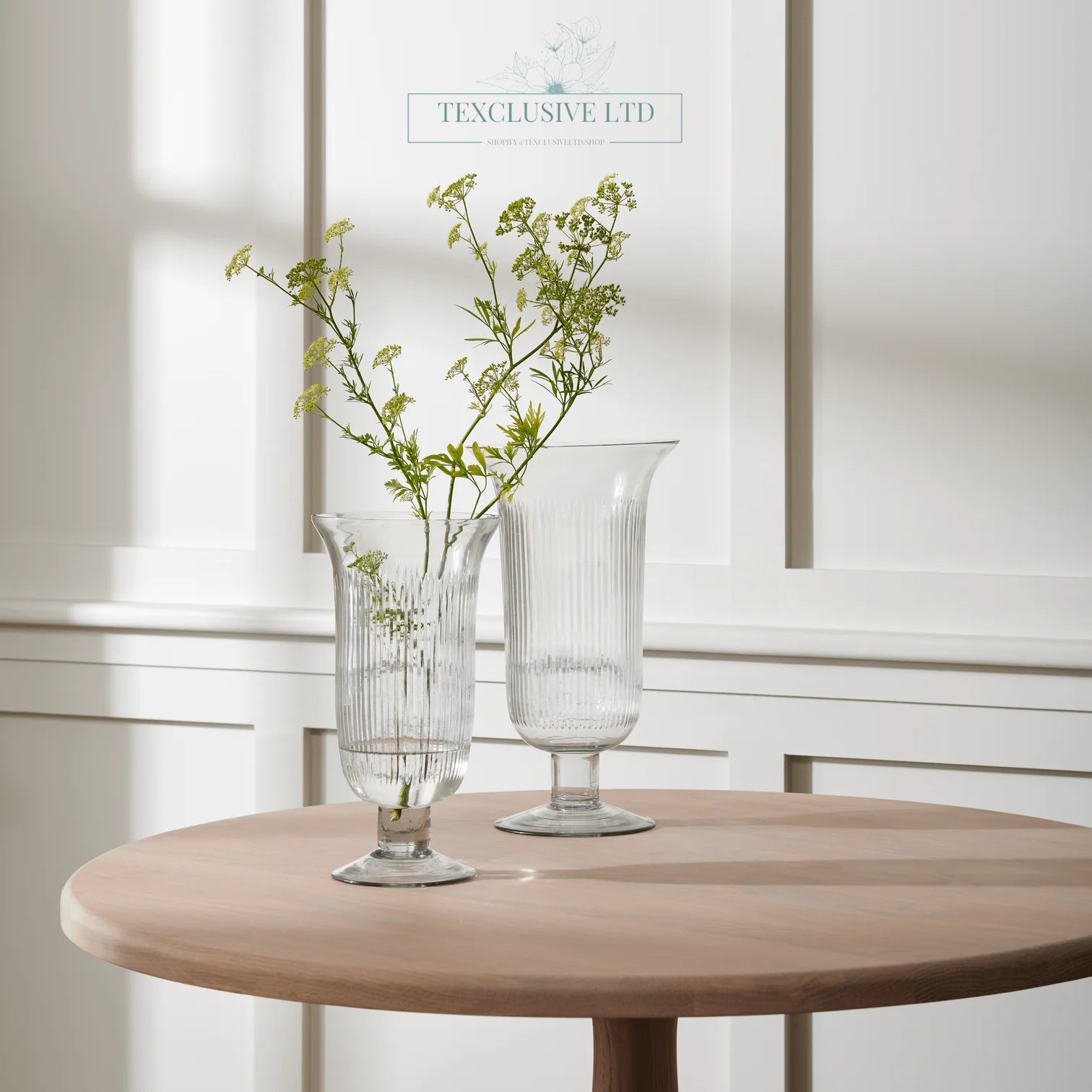 Ribbed design is cut by hand. Vase is watertight so it can be used with real flowers and foliage. Pair with our Blyton pillar candles.